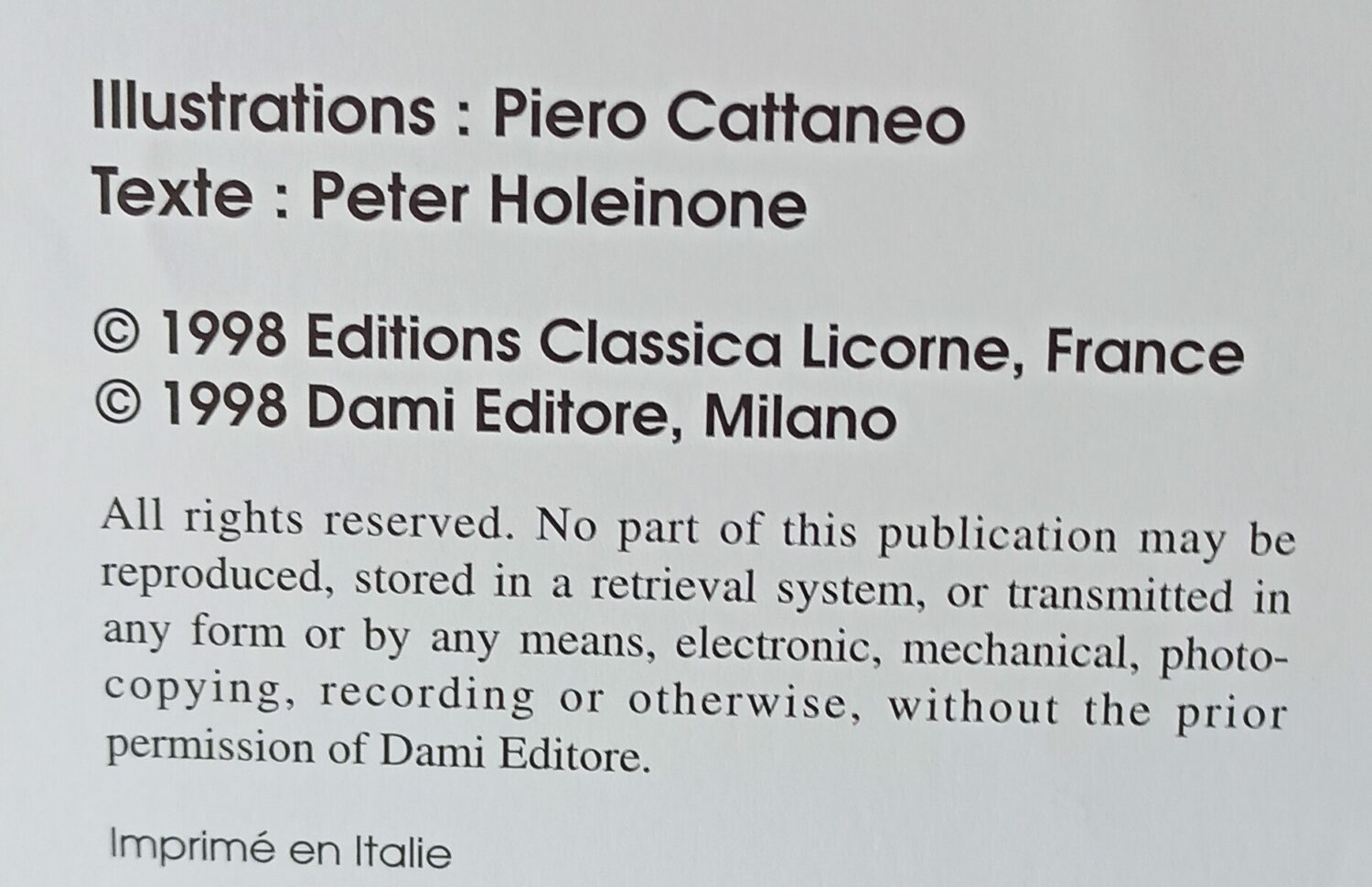 7 histoires librement adaptées de Perrault, Hawthorne et Bechstein, magnifiquement illustrées par Piero Cattaneo sur des textes de Peter Holeinone.