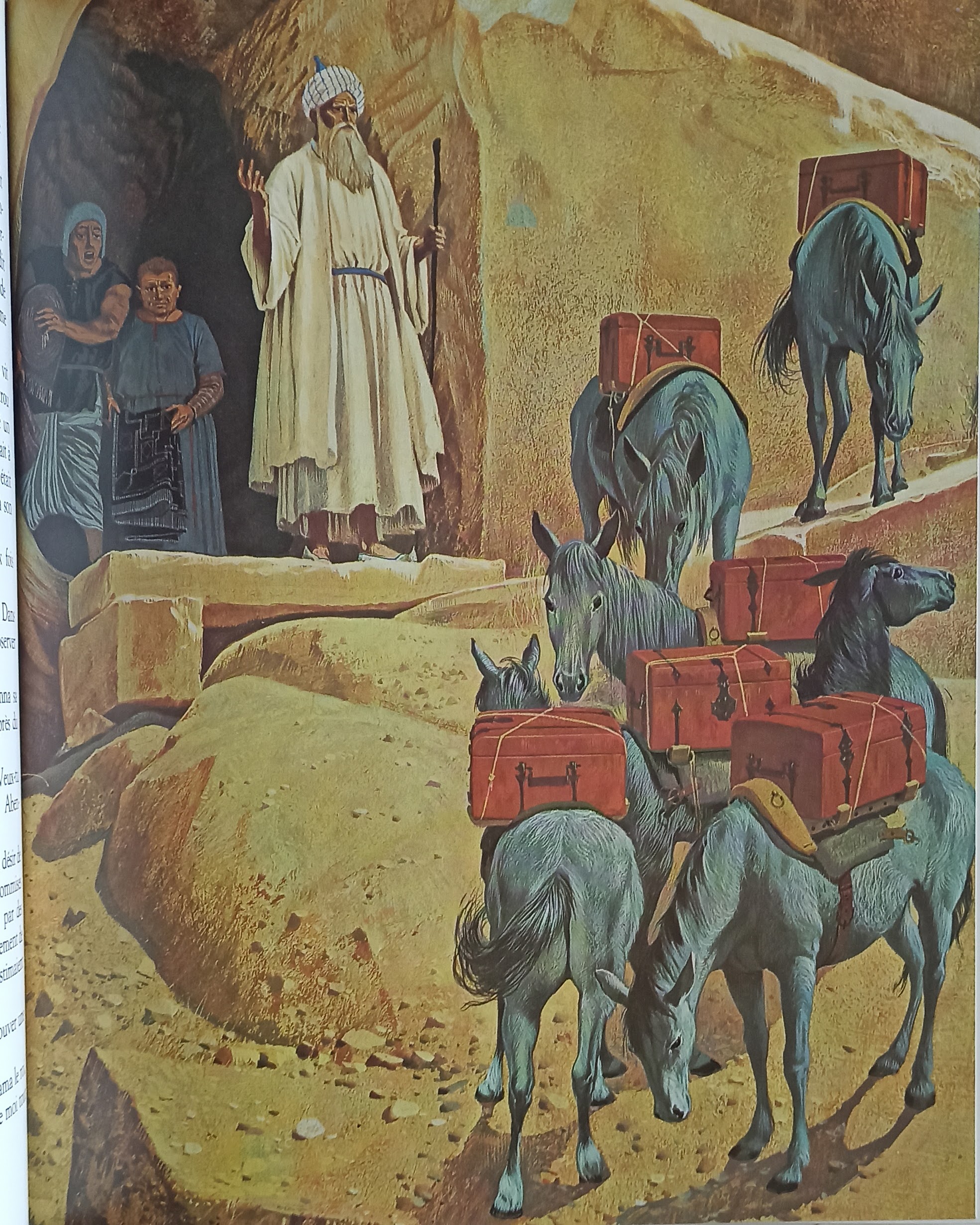 Publié à l’origine par Fabbri en 1979 dans la collection Biblioteca Fantastica, La Belle et la Bête et autre contes merveilleux fait partie de la collection sortie chez Le Livre de Paris – Hachette sous le nom des Contes des mille et une images. Les illustrations regroupent le meilleur des illustrateurs italiens de l’époque, Gianni Benvenuti, Piero Cattenao (sous le nom de Pikka), Federico Santin, Antonio Lupatelli (vrai nom de Tony Wolf qui signe ici sous un autre pseudonyme, L’Alpino) etc… D’ailleurs la liste des illustrateurs est très succincte et on ne sait pas qui a fait quoi. Il a fallu recouper avec d’autres publications pour identifier et attribuer les histoires.