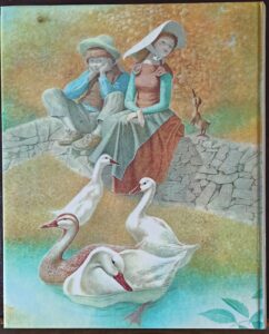 Publié à l’origine par Fabbri en 1979 dans la collection Biblioteca Fantastica, La gardeuses d’oies et autre contes merveilleux fait partie de la collection sortie chez Le Livre de Paris – Hachette sous le nom des Contes des mille et une images. Les illustrations regroupent le meilleur des illustrateurs italiens de l’époque, BenvenutiRizzatoMaraja etc… D’ailleurs la liste des illustrateurs est très succincte et on ne sait pas qui a fait quoi. Il a fallu recouper avec d’autres publications pour identifier et attribuer les histoires.