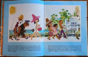 Sauf exceptions, le texte est sur la page de gauche et les illustrations, entièrement en couleurs, occupent les pages de droite. Certaines illustrations sont en double pages.
